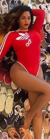 Beyonce Poses In Red High Cut Bodysuit As She Teases Her Ivy Park