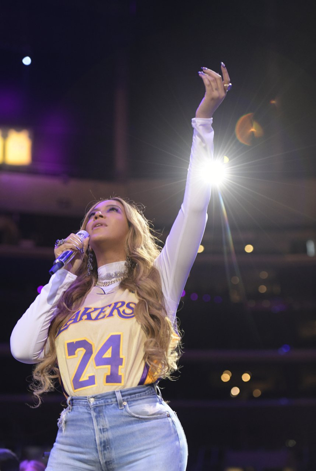 Beyonce S Yellow Suit At The Kobe Bryant Memorial Popsugar Fashion