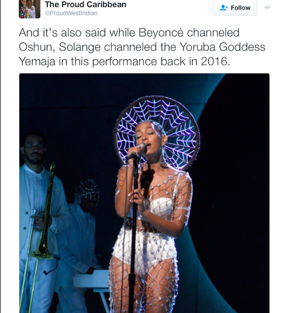 Beyonce oshun solange yemaya. In this section she specifically references osun also called oshun and yemoja yemaya two orishas or divine goddesses. Her colors are white and blue. Yemaya is maternal dignified and nurturing the spiritual mother of all.