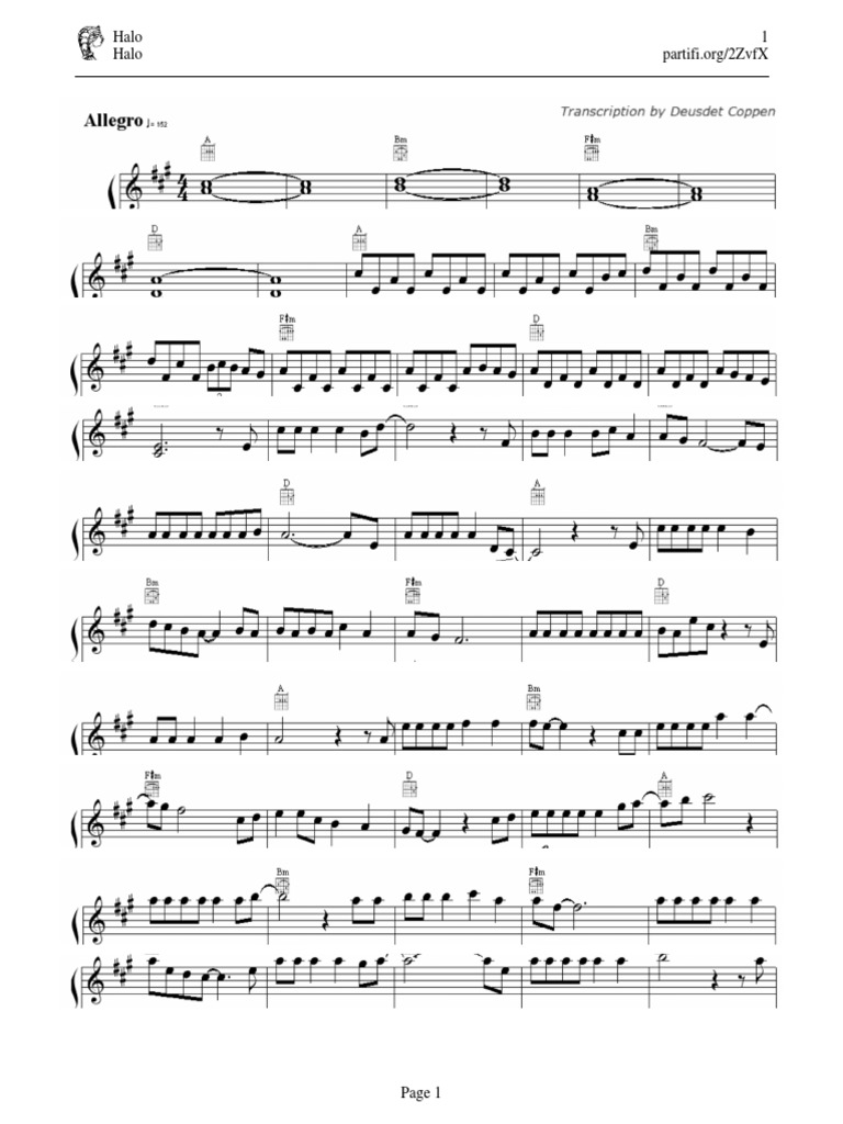 Halo Original Key Violin By Beyonce Digital Sheet Music For Violin Download Print H0 229807 142159 From Kevin Busse Self Published At Sheet Music Plus