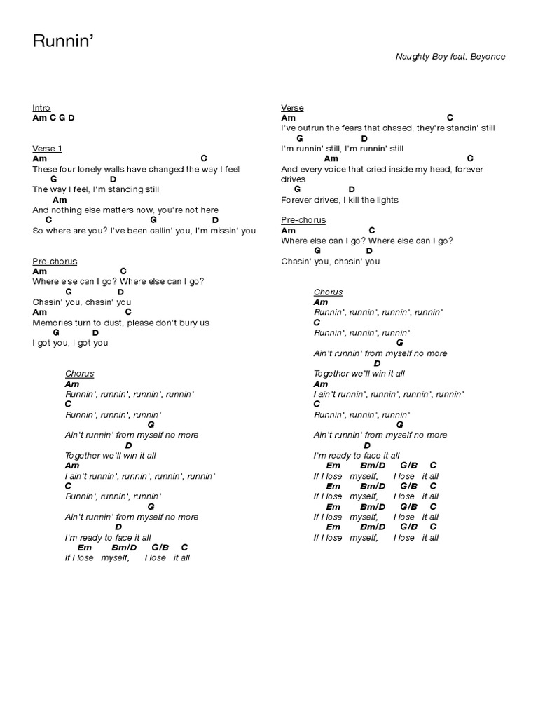 Music Lyrics Runnin Lose It All Naughty Boy Ft Beyonce And